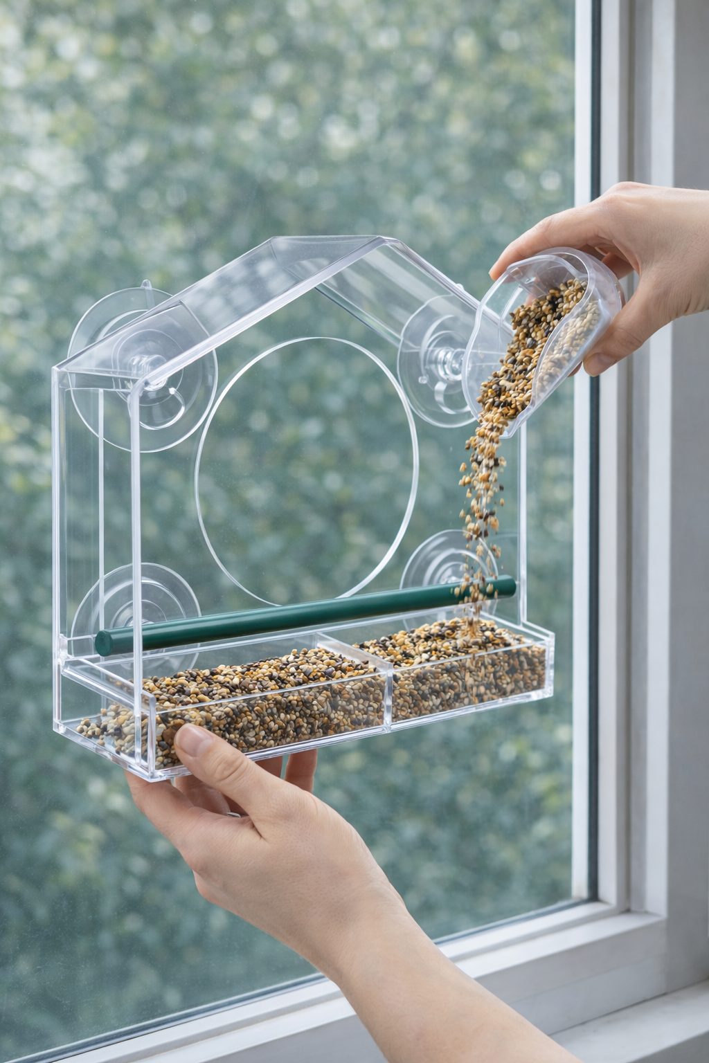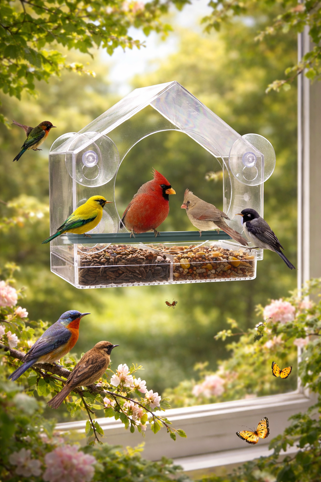 Comedero de Aves con Ventosas Ultra Resistentes para Ventana